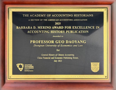 该奖项由全球会计学术权威机构美国会计学会(AAA)旗下的会计史学家学会(AAH)负责评选,面向全球会计历史研究群体,具有极高的国际公信力。
