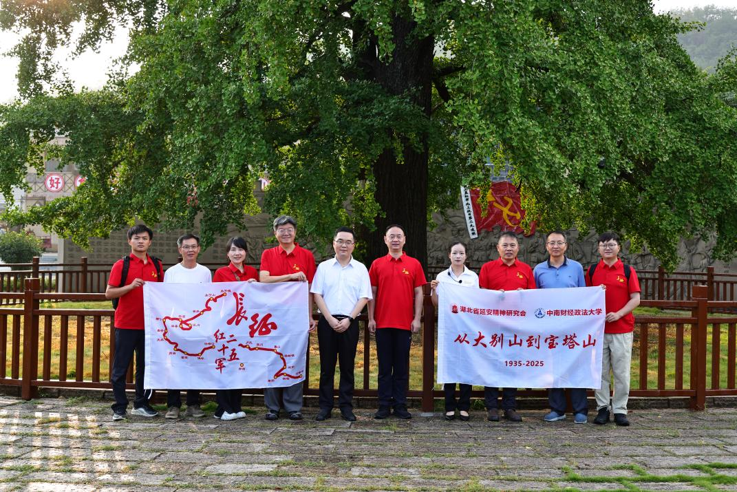 新闻网讯(通讯员 卓张鹏 徐乐 侯竟 摄影 杜鹏)为纪念中国人民抗日战争胜利八十周年、中央红军到达陕北九十周年,近日,中南财经政法大学重走红二十五军长征路团队在湖北省延安精神研究会指导下启程。一行七人驱车辗转鄂豫陕甘宁五省,历时16天,调研15个县市、探访27处红色场馆,录制系列思政微课。团队以“五亲模式”(亲身经历、亲自感悟、亲手提炼、亲切讲授、亲力奉献)传承红色基因,将新时代成就融入“大思政课”,筑牢高校立德树人根基。