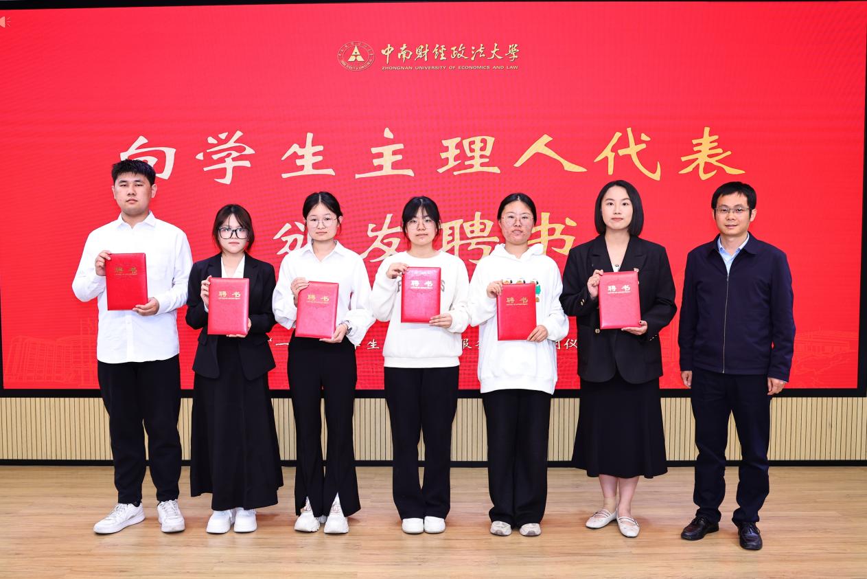 陈柏峰为学生自我管理委员会学生主理人代表颁发聘书。