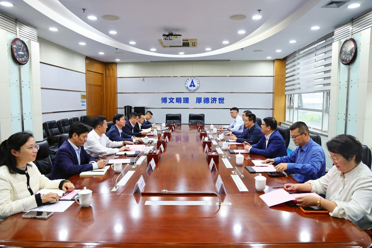 童士清对我校的热情接待表示感谢。他介绍了广东财经大学的发展历史与战略发展规划,并表示学校面临在师资评价、学科动态调整、人工智能赋能教育等方面的挑战,希望借鉴兄弟院校先进经验,进一步优化内部治理体系,全面提升办学综合实力。
