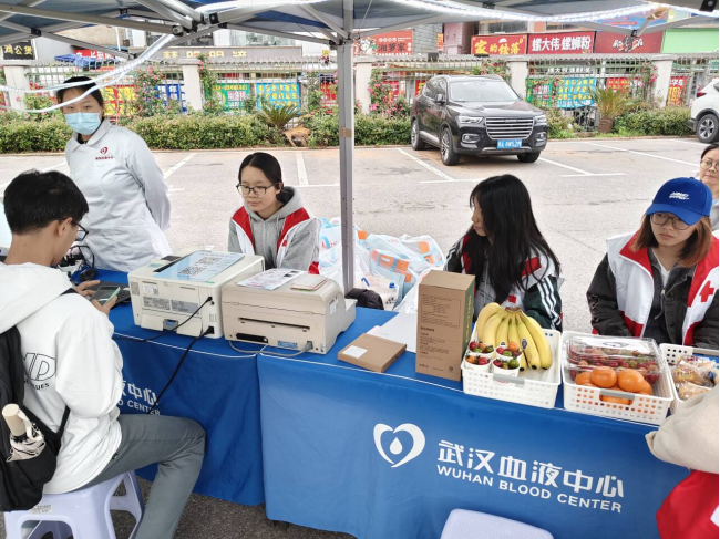 图 3 红十字志愿服务队开展献血车进校园活动
