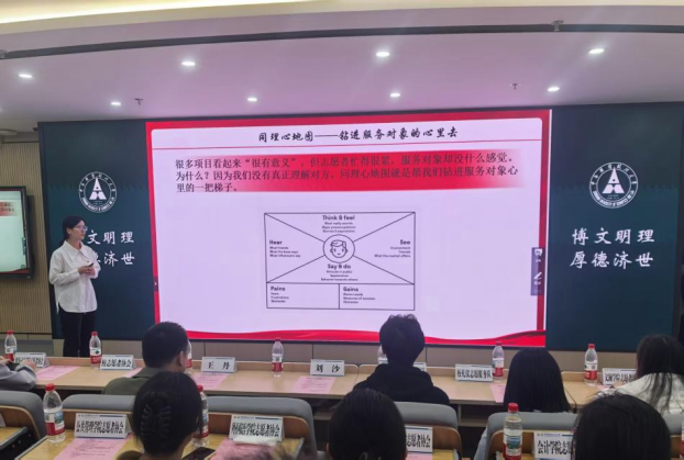 图 1 刘沙围绕志愿服务项目设计展开分享