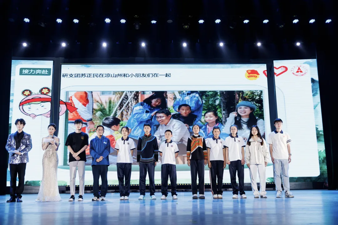原创舞蹈《阿依奔现》成就了“梦想同框”特别时刻。舞台上,四川省凉山州越西县文星中学6名学生与校大学生舞蹈团团员共舞,重现“湖山同心桥”的教育情缘。