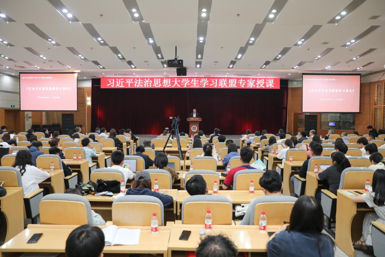 新闻网讯(通讯员 瞿玉杰 张智翔 黄辰宇 杨抒妍)5月22日上午,习近平法治思想大学生学习联盟成立大会在中国政法大学昌平校区举行。司法部普法与依法治理局副局长、法治宣传中心副主任谢向红,中国政法大学党委副书记黄瑞宇出席本次大会,我校党委学生工作部部长王前哨、法学院党委副书记陈金川、学校习近平法治思想宣讲团师生代表参加会议。