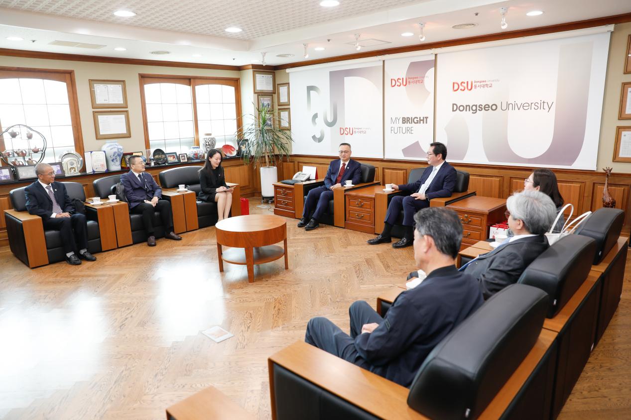 访问团对东西大学学生就业支援处进行了调研,重点了解了学生就业资讯中心、女大学生职业发展中心等部门的特色工作流程,以及学生“READY+”就业路径项目的创新模式。代表团还参观了东西大学“Glocal 30”项目文化信息教育园区、林权泽电影博物馆等配套教学设施。