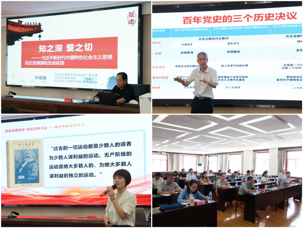 学员们聆听了正定党校常务副校长齐顽强主讲的《“知之深 爱之切”——习近平正定足迹》专题教学,系统学习习近平总书记在正定工作期间的改革实践与为民情怀。省委党校王英杰教授以《百年大党的奋斗历程及宝贵经验》为题,从党史发展脉络切入,深刻阐释了中国共产党带领人民从站起来、富起来到强起来的历史逻辑。在音乐党史课《歌声中的百年风华》上,赵会分副教授通过红色歌曲演绎,让学员在艺术熏陶中感悟党的初心使命。