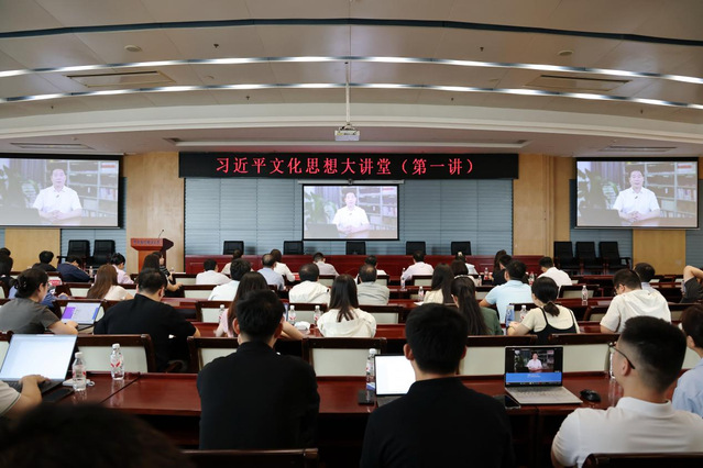 武汉大学党委常务副书记沈壮海教授以“创造无愧于我们这个时代新文化的思想引领”为题进行专题授课。沈教授指出,问题是时代的声音。对问题的敏锐关注与自觉回应,是理论生成与创新发展的起点,是思想保持生机活力的奥妙所在。习近平文化思想聚焦新时代文化建设面临的重大理论和实践问题,提出一系列富有原创性的新概念、新范畴、新观点、新论断,形成了科学严整的理论体系,以丰富而深刻的创造性之答给予重大时代之问、文化之问以有力回应,为推动马克思主义文化理论中国化时代化作出了原创性贡献。习近平文化思想是新时代我们党推进“两个结合”的重大成果。这一重要思想有力引领新时代宣传思想文化工作展开一系列变革性实践、实现一系列突破性进展,为新征程上深入推进社会主义文化强国建设提供了科学行动指南。坚持以习近平文化思想为指导,对锚定2035年建成文化强国战略目标,不断发展具有强大思想引领力、精神凝聚力、价值感召力、国际影响力的 新时代中国特色社会主义文化,持续筑牢强国建设、民族复兴的文化根基,具有重要意义。