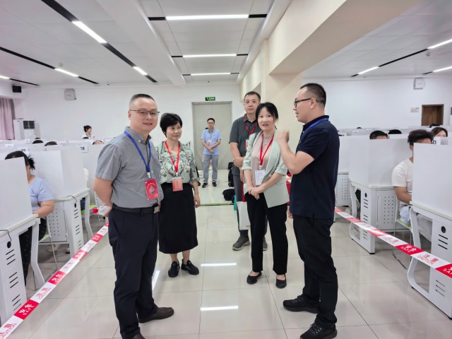 巡考组一行首先深入我校数字化考试基地,实地察看了机考考场的硬件设施、网络环境、应急处置及考务组织情况,并现场观摩了考生机考操作。