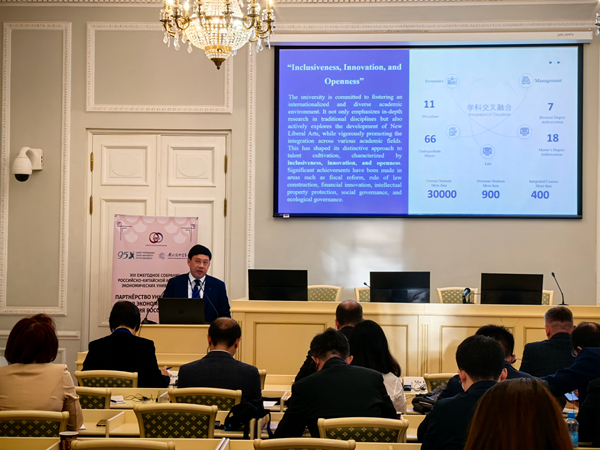 9月25日,代表团参加中俄经济类大学联盟第十三次年会,刘仁山作《中俄高教携手同行,以法经智慧引领全球治理变革》的主旨发言,就未来合作提出工作建议。