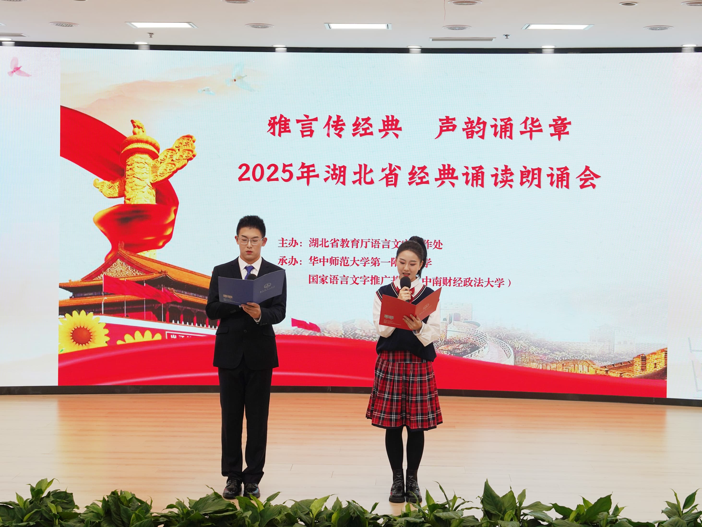 新闻网讯(学生通讯员 卢欣彦 刘键蓝 钟知方 思茵茵)10月27日下午,由湖北省教育厅语言文字工作处主办,国家语言文字推广基地(中南财经政法大学)、华中师范大学第一附属中学承办的“湖北省2025年经典诵读朗诵会”,在华中师大一附中一号报告厅举行。湖北省教育厅语言文字工作处二级调研员周建卫,武汉市武昌区教育局副主任督学王琼、语委办干部姚慧,中南财经政法大学本科生院院长钱学锋、新闻与文化传播学院院长余秀才,华中师范大学第一附属中学校长徐惠及相关人员出席活动。