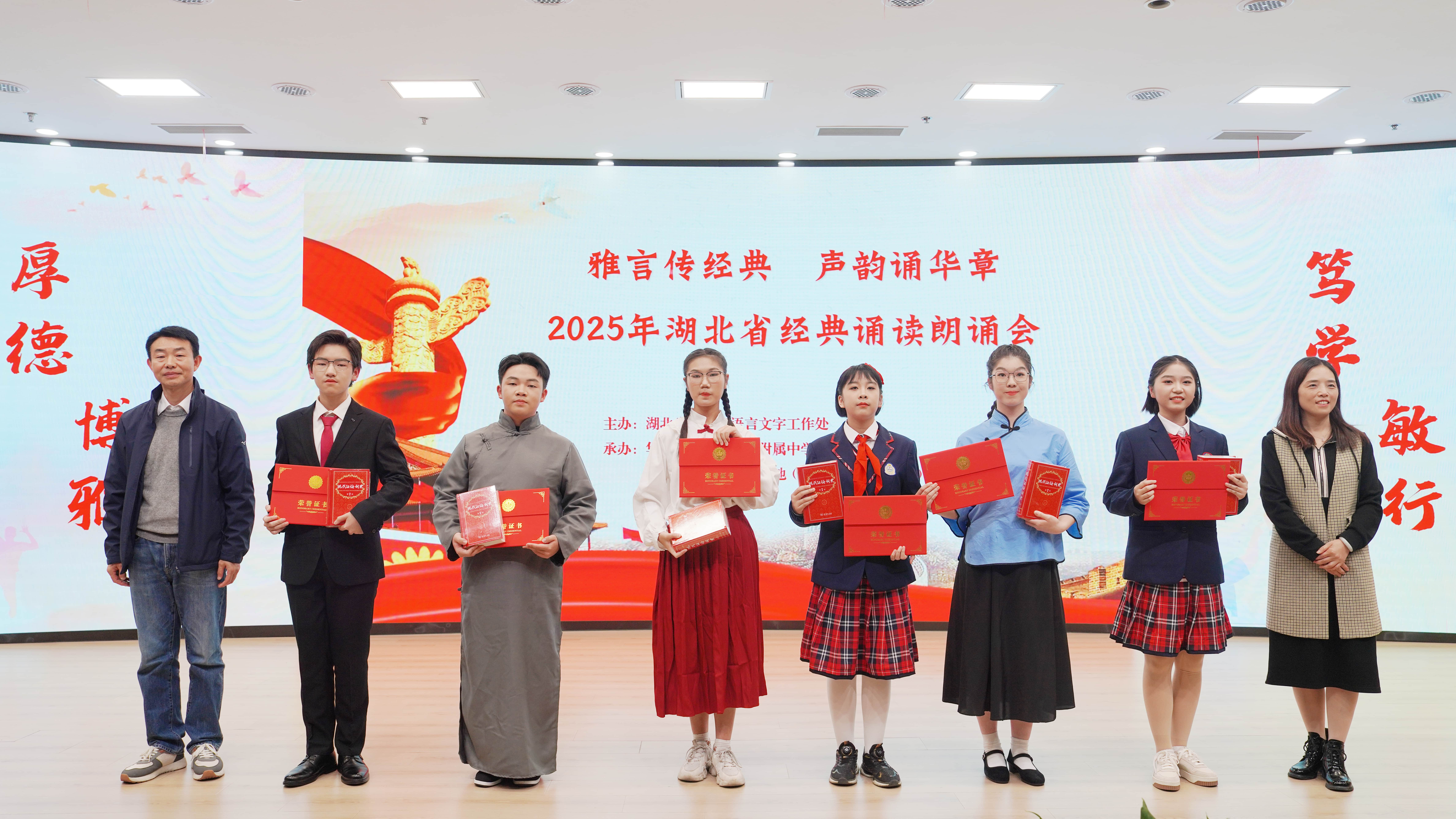 朗诵展示环节,来自华中师大一附中的学子以标准的普通话和饱满的情感深情演绎了多部经典作品,用声音勾勒出经典诗文的意境,生动传递出其中的文化底蕴与精神力量。