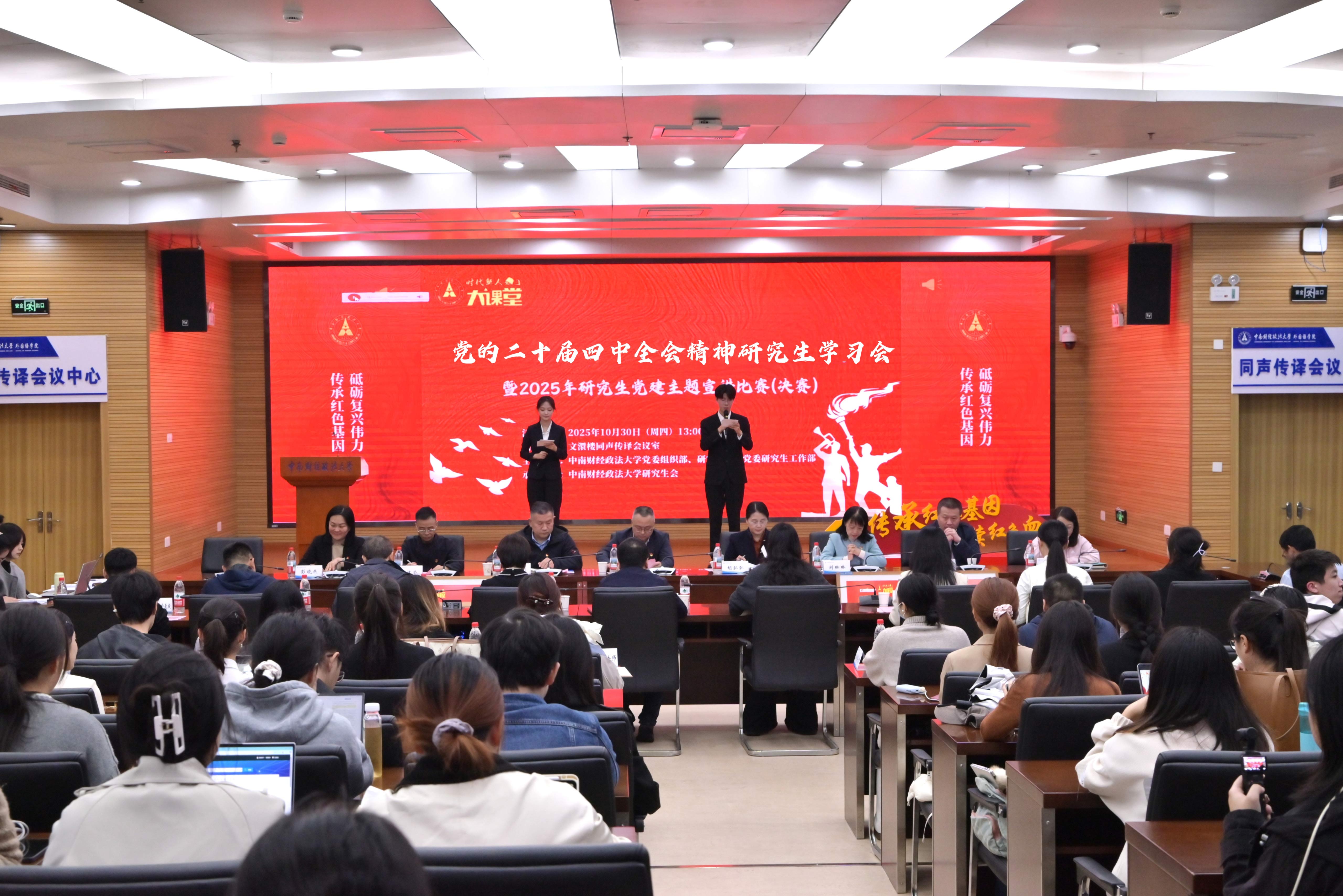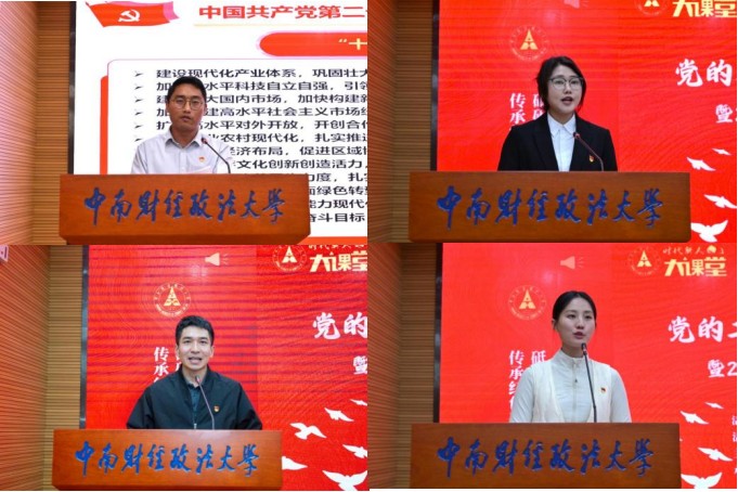 在朋辈领学环节,学校研究生宣讲团成员苏正民作党的二十届四中全会公报学习。随后,校研究生会主席团成员周文倩、纪检监察学院(国家治理学院)博士研究生伊力夏提·艾合麦提与工商管理学院研究生辅导员徐一菱等师生代表依次作学习心得汇报。