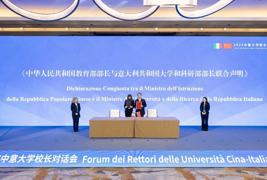 中华人民共和国教育部部长怀进鹏及意大利共和国大学和科研部部长安娜·玛利亚·贝尼尼出席会议并发表主旨演讲,签署《中华人民共和国教育部部长与意大利共和国大学和科研部部长联合声明》。