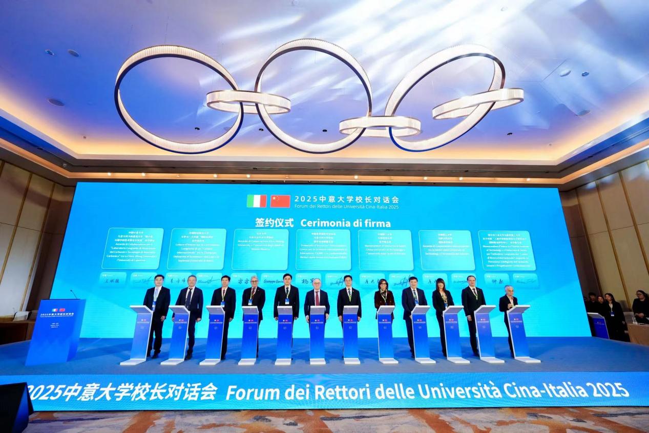 新闻网讯(通讯员 张俊)11月13日,以“融合·创新·治理”为主题的2025中意大学校长对话会在北京举行。对话会由中华人民共和国教育部与意大利大学和科研部共同举办。来自中国和意大利60余所高校和机构的嘉宾代表,围绕推进学科交叉融合发展、创新合作办学模式、培养全球治理人才等议题,分享中意双方在高等教育领域的合作成果,畅谈全球化视野下中意高等教育合作未来方向。中南财经政法大学校长、党委副书记朱方伟及意大利罗马第一大学中国事务校长代表、我校法与经济学院意方院长奥利维耶罗·迪利贝托参加对话会。