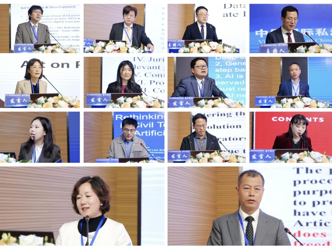 在议题讨论环节,与会学者围绕四大主题深入交流。关于“人工智能国际私法基本理论构建”,中韩学者探讨了AI对法律理论与实务的挑战、国际私法功能重塑及人工智能法域外效力等议题。“数据跨境的国际私法问题”单元聚焦数据流动中的管辖权、法律适用与个人数据保护等现实难题。“智慧资产的国际私法问题”讨论了数字货币、数字资产定位、代币治理及跨境侵权的冲突法构建。“数智时代的国际民商事争议解决”则分析了在线仲裁、电子送达、人工智能辅助司法等新型争议解决机制的发展与规制。