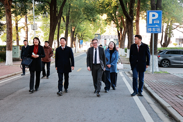 访问期间,朱方伟陪同巴黎商学院代表团参观了首义校区,并详细介绍了国际化校区的初步规划与建设构想。阿普泰尔先生对校区深厚的历史文化底蕴、完善的办学条件以及前瞻性的发展规划给予了高度评价。