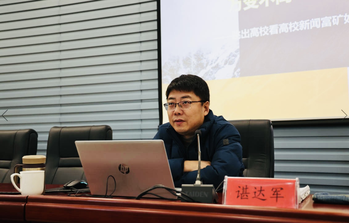 长江日报社科教新闻部主任谌达军在以“万变不离‘发现’——跳出高校看高校新闻富矿如何开采”为主题的报告中,围绕新闻宣传工作基本原则展开阐述,强调要坚持传播中国声音、讲好中国故事,他结合中国新闻奖获奖案例,指出在汉高校是全国优质新闻资源的富集地,号召大家聚焦时代发展脉搏,强化宏大叙事能力,用心用情用力做好高校新闻宣传工作。