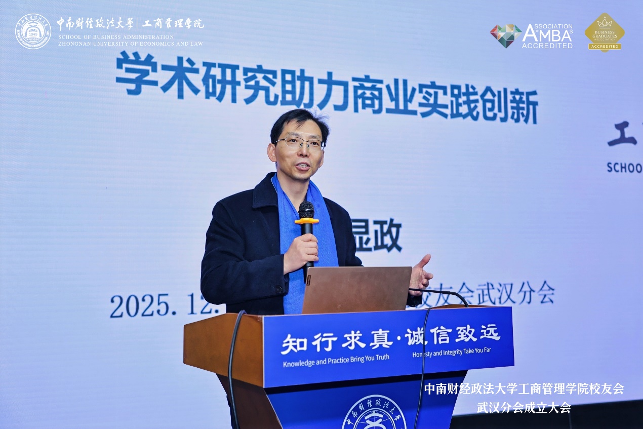 新闻网讯(通讯员 董红英)12月13日上午,中南财经政法大学工商管理学院校友会武汉分会成立仪式在首义校区文汇楼浙晓报告厅举行。大会以 “中南工商 智汇江城”为主题,立足武汉本土、传承“博文明理,厚德济世”校训,旨在搭建精准化、常态化校友交流合作平台,服务校友职业成长与创新创业。