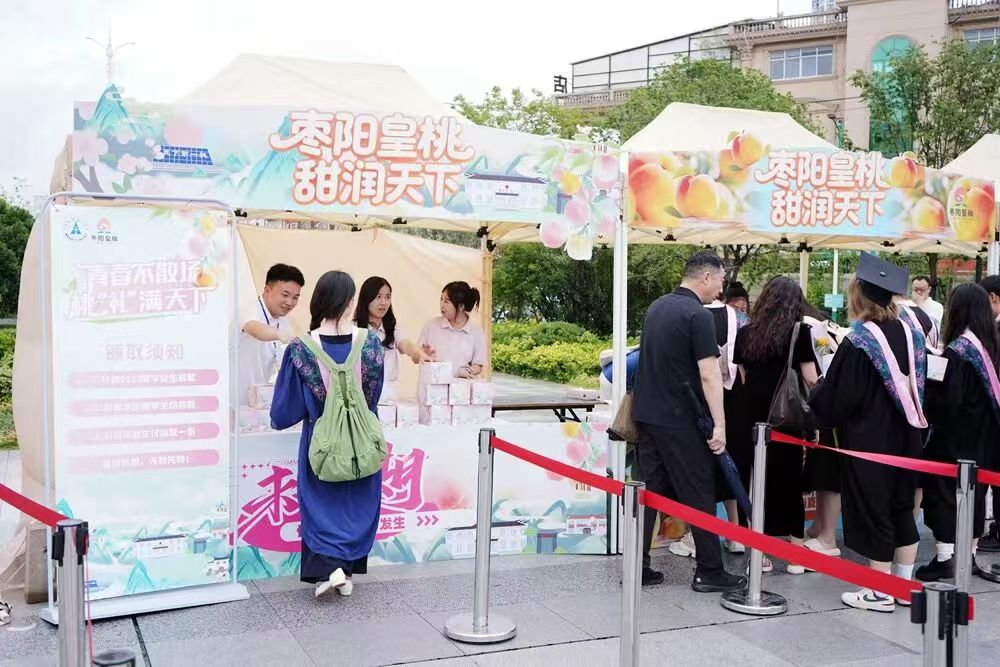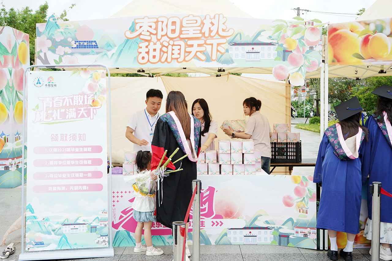 毕业季,中南财经政法大学为毕业生送上三重暖心祝福。6 月 19 日毕业典礼当天,五羊广场发放10000份共20000个枣阳皇桃,由 2012届校友周长禄牵头赞助,寓意 “桃李满天下”。毕业生还可预约领取云南盐津 “暖心餐”,并获赠延续多年的毕业暖心包。三重好礼承载母校期许,助力学子奔赴人生新征程。