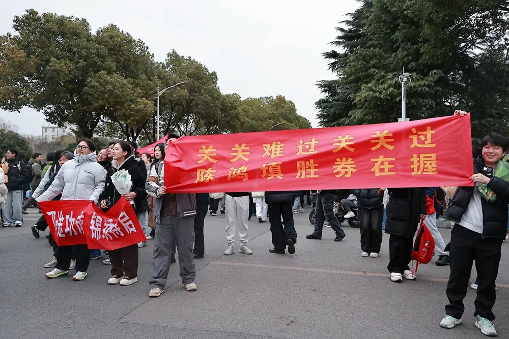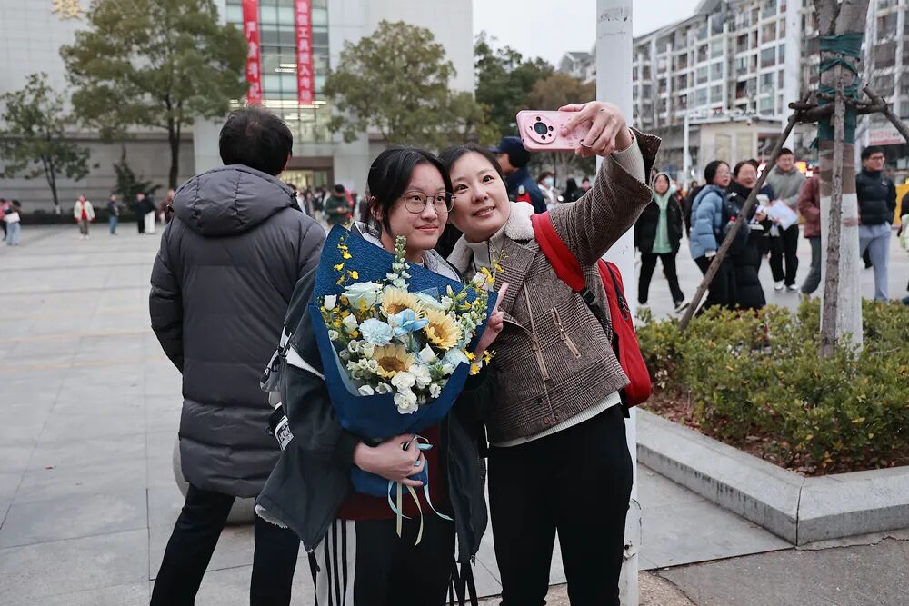 候场时,考生捧着划满重点的笔记冲刺;考场内,日夜耕耘凝聚成落笔勇气。考生间互道加油,场外家人翘首以盼,送花拥抱道 “辛苦了”,暖心瞬间动人。