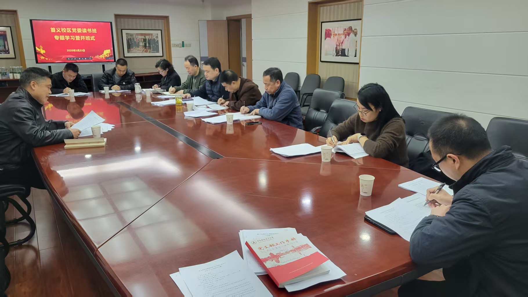 新闻网讯(通讯员 苏鹏 摄影 付洪深)为深入学习贯彻习近平总书记关于树立和践行正确政绩观的重要论述,全面落实学校学习教育实施方案要求,3月23日上午10:30至12:00,首义校区党委树立和践行正确政绩观学习教育读书班专题学习暨开班式在中南楼512会议室隆重举行。校区全体中层领导干部参加本次活动,开班式由首义校区党委书记詹万明主持。