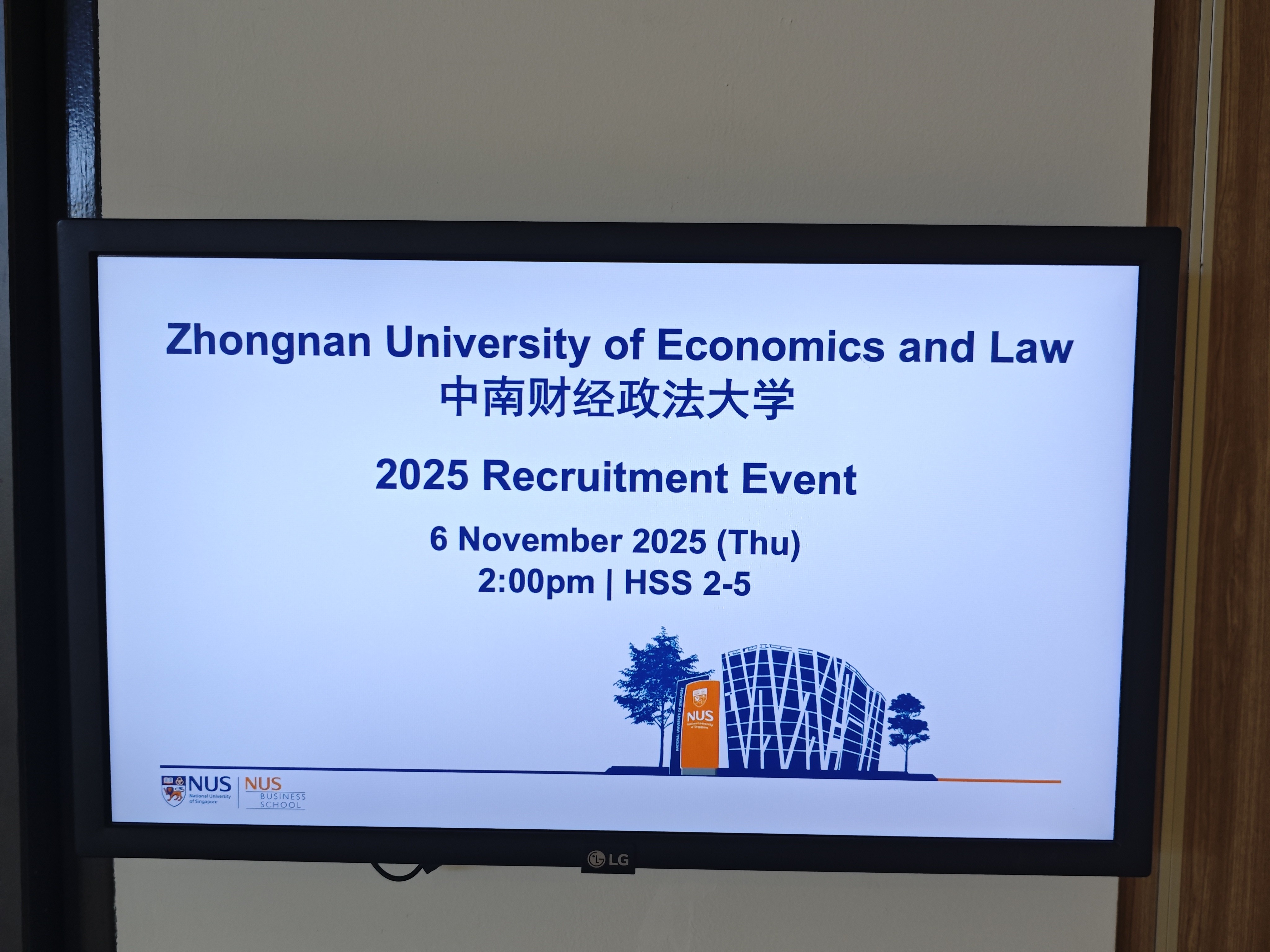 “中南财经政法大学海外青年人才论坛--新加坡专场人才招聘会”