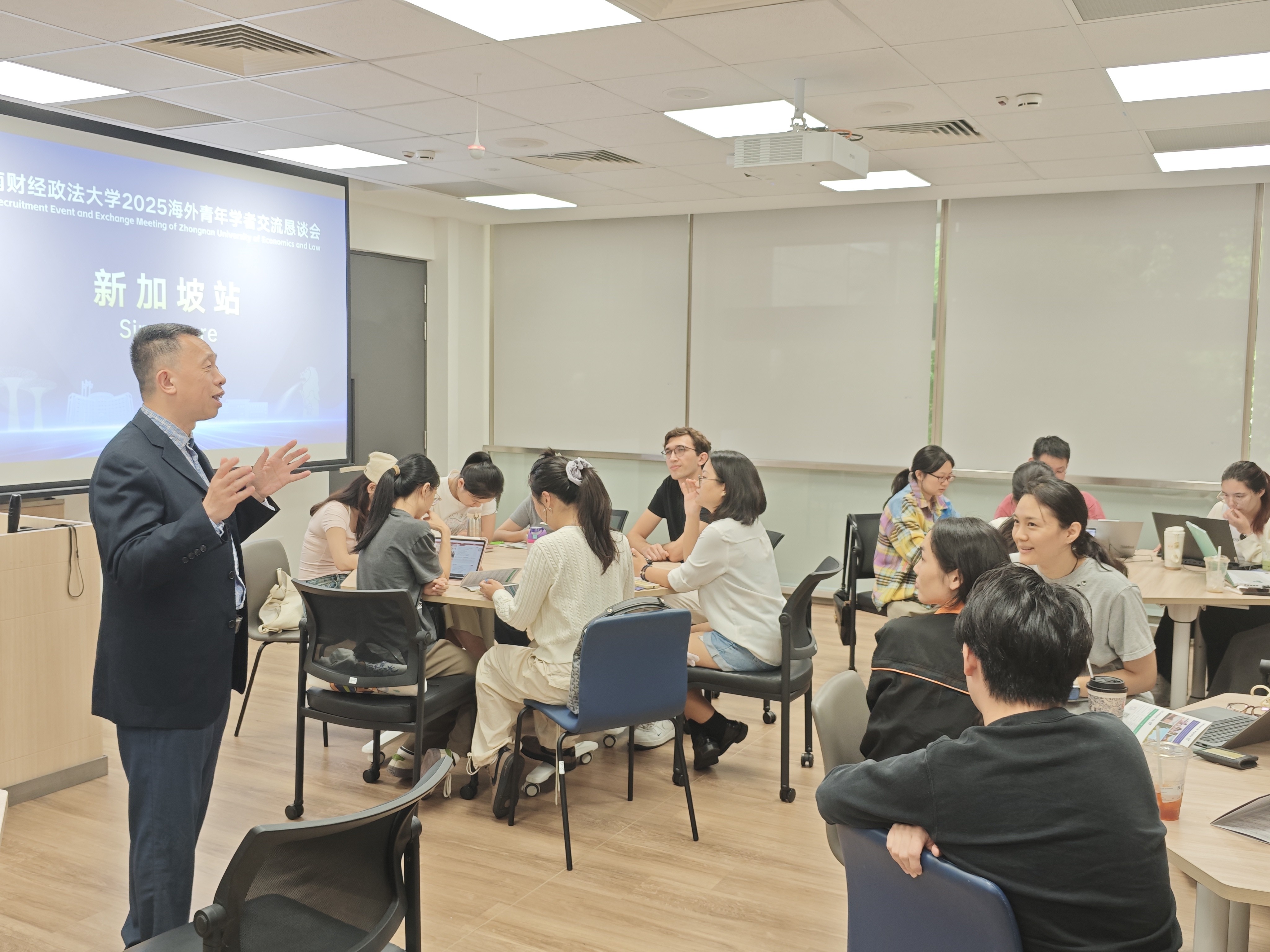 访问期间,代表团在新加坡国立大学(NUS)成功举办中南财经政法大学海外青年人才论坛--新加坡专场人才招聘会,吸引来自NUS、南洋理工大学等高校近50名博士及青年学者参与。招聘会通过政策宣讲与“一对一”洽谈相结合的方式,初步建立起一批高质量海外人才档案,为学校海外人才引进工作拓宽了渠道。