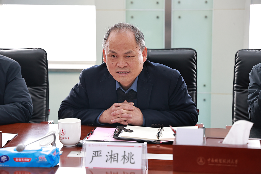 陈狮对严湘桃一行的到访表示欢迎,感谢洪山区长期以来在基层社会治理、参政议政等方面给予学校的支持。他指出,当前学校通过综合改革,不断挖掘内部发展潜力,学校人才培养、科学研究、社会服务等工作稳步提升。他表示,学校将结合自身优势深度参与环大学创新发展带建设,高质量服务地方社会经济发展。