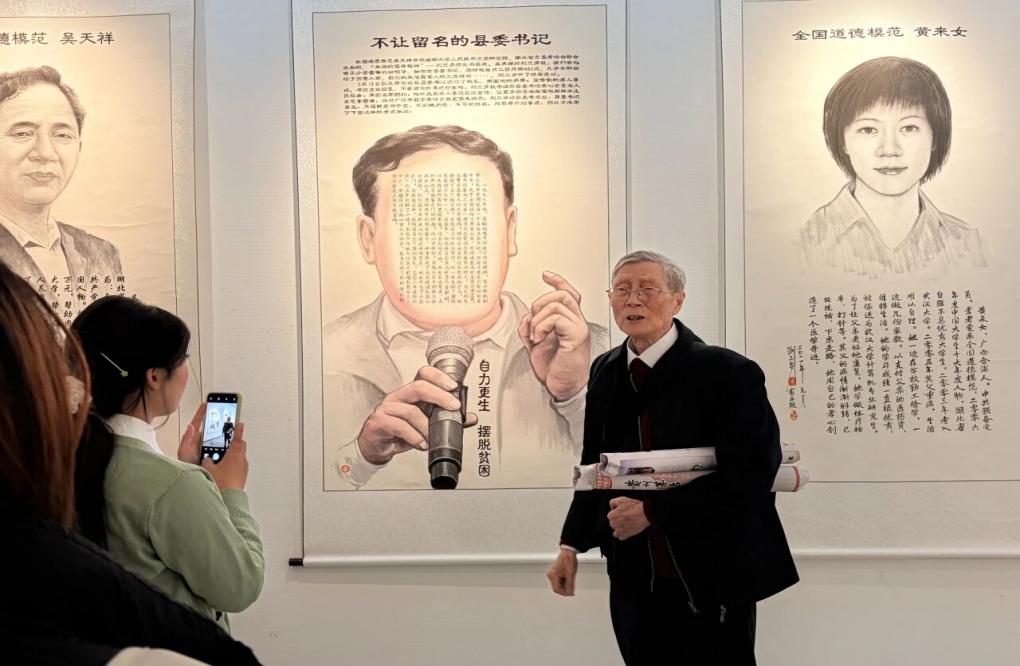 我校杰出校友刘三多先生亲自为同学们讲解。他指着历经岁月的画作,讲述背后的故事,分享“画讲中国故事”的创作理念,介绍以党和人民奋斗史为蓝本的系列作品。