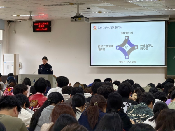 新闻网讯(通讯员 翟书华 徐飞)4月9日,保卫部邀请首义路派出所民警来校开展“防范电信诈骗,共建平安校园”专题宣讲,经济学院、经济贸易学院约300名师生参加活动。