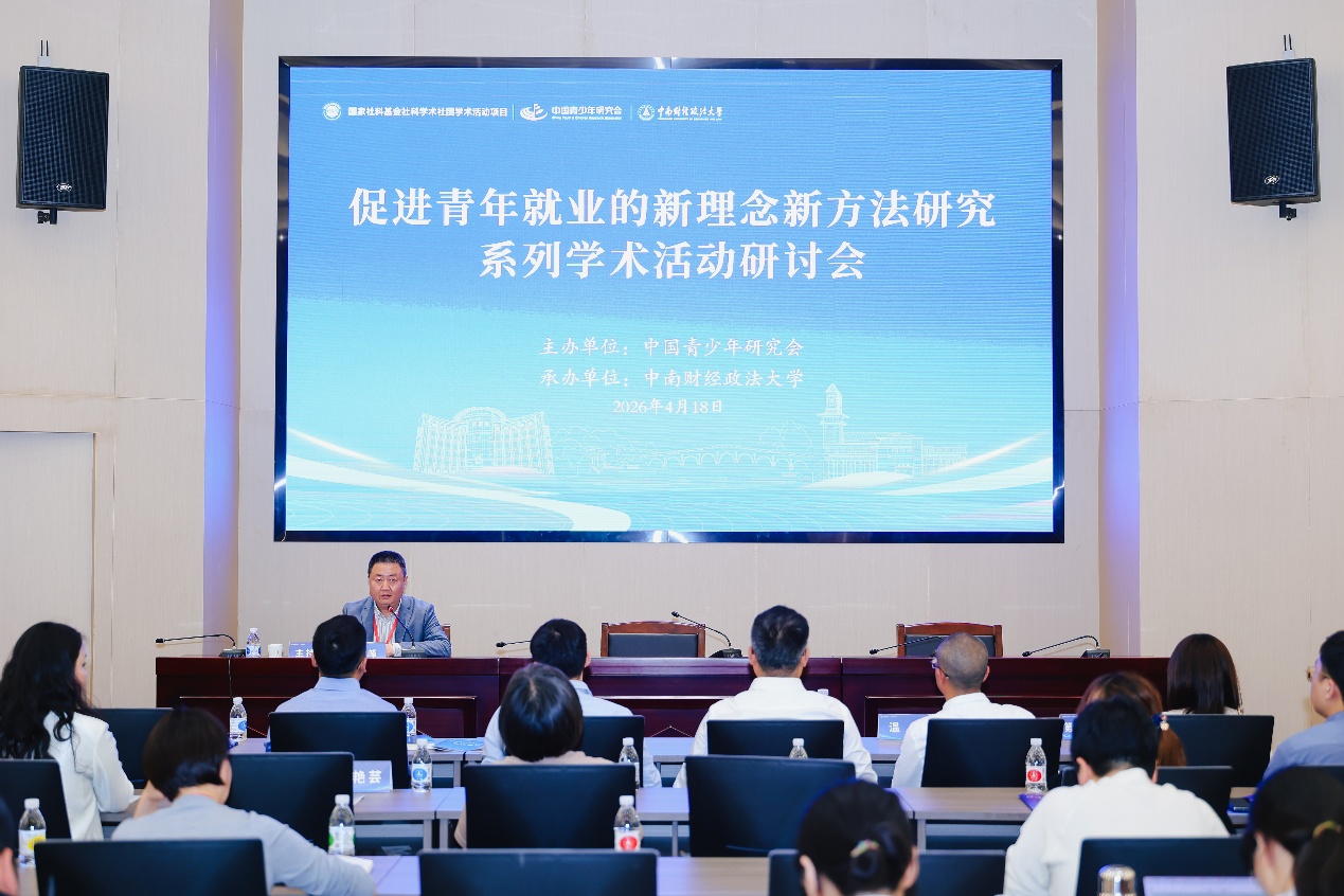 新闻网讯(通讯员 范媛 张晶)为深入学习宣传贯彻党中央关于促进青年就业工作的决策部署,4月18日,由中国青少年研究会主办,中南财经政法大学承办的国家社科基金立项资助项目——“促进青年就业的新理念新方法研究系列学术活动研讨会”在中南财经政法大学举办。来自全国20余省市的青年研究工作者和相关机构研究者逾百人参加会议。中国青少年研究中心党委副书记、主任,中国青少年研究会会长刘俊彦,共青团湖北省委副书记徐本禹,中南财经政法大学党委副书记陈狮出席开幕式。开幕式及主旨报告环节由中南财经政法大学党委学生工作部部长、团委书记黄小妹主持。