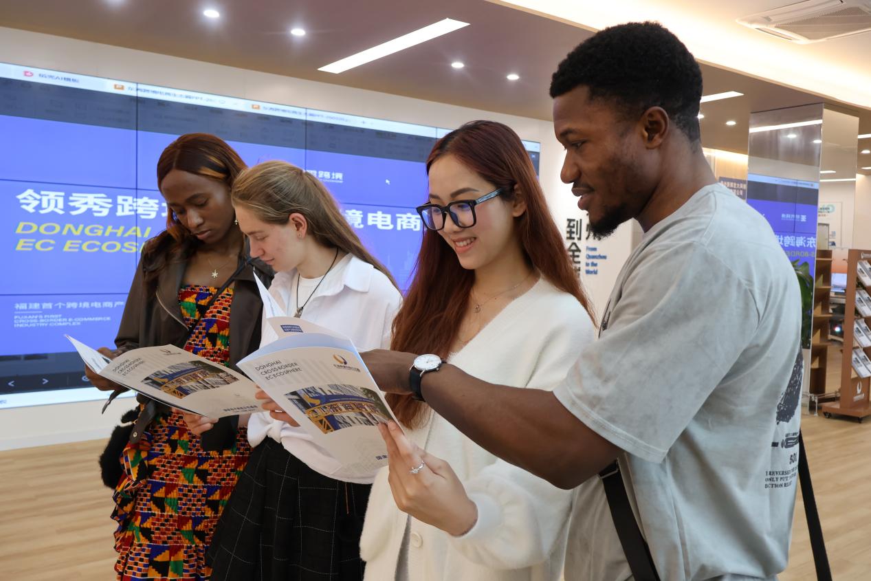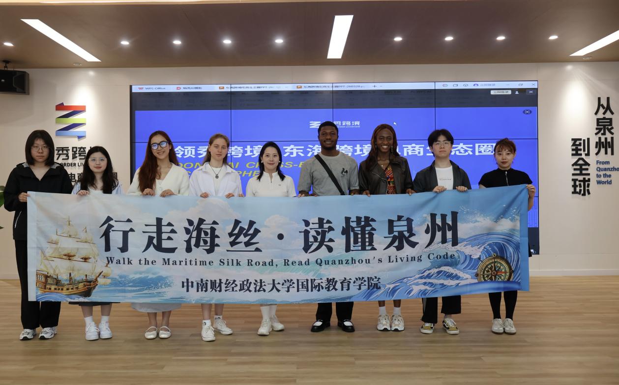行程尾声,团队前往东海跨境电商生态圈跨境电商综合服务大厅。据领秀跨境项目代表吴小艾介绍:“如今泉州跨境电商市场正处于强劲的风口期,成为“一带一路”经贸合作的新引擎。”学生们在参访中了解泉州如何借助跨境电商平台从“产品出海”迈向“品牌出海”,在数字时代的“海丝商路”中认识数字经济对传统贸易方式的深刻重塑。