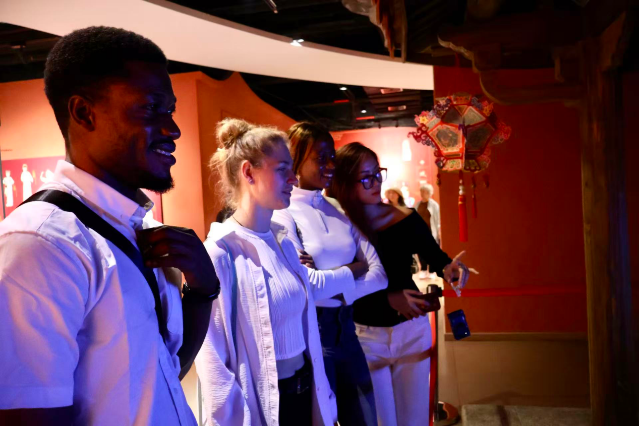 在泉州非物质文化遗产馆,中外学生一同观赏了精妙绝伦的提线木偶表演,聆听了悠远婉转的南音唱腔,并亲手体验木偶涂鸦与剪纸技艺。学生们在丝线牵动与纸笔创作中,真切感受到了千年非遗的灵动神韵。在蟳埔村,实践团队梳圆髻、穿骨簪、绕花串,体验了独特的国家级非物质文化遗产“簪花围”,在互相观摩中加深了对海丝文化活态载体的理解。
